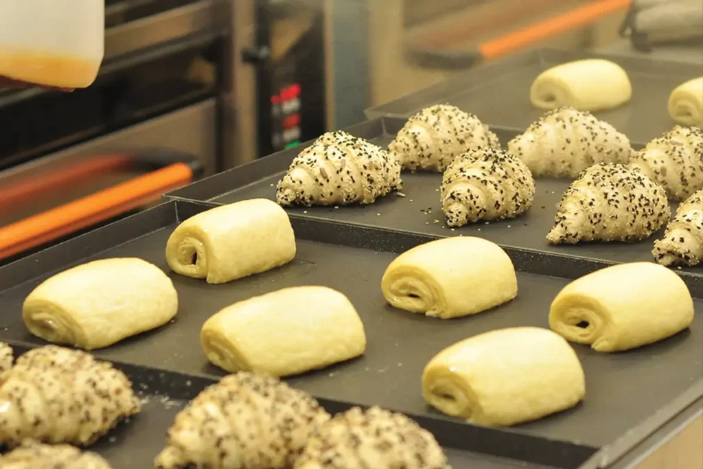 Setelah proses fermentasi, adonan dipanggang menggunakan peralatan yang dirancang khusus untuk produksi skala industri. Tahap pemanggangan dalam pabrik bakery sangat menentukan karakter akhir produk, baik dari segi warna, aroma, maupun tingkat kematangan. Produk yang telah matang kemudian melalui proses pendinginan sebelum dilakukan pengirisan dan pengemasan. Seluruh rangkaian proses produksi di pabrik bakery diawasi melalui sistem pengendalian mutu guna memastikan produk yang dihasilkan memenuhi standar kualitas dan keamanan pangan.